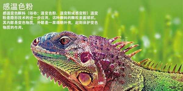 感溫變色粉是由電子轉(zhuǎn)移型有機化合物體系制備的。 電子轉(zhuǎn)移型有機化合物是一類具有特殊化學(xué)結(jié)構(gòu)的有機發(fā)色體系。在特定溫度下因電子轉(zhuǎn)移使該有機物的分子結(jié)構(gòu)發(fā)生變化,從而實現(xiàn)顏色轉(zhuǎn)變。這種變色物質(zhì)不僅顏色鮮艷,而且可以實現(xiàn)從“有色===無色”狀態(tài)的顏色變化,這是重金屬復(fù)鹽絡(luò)合物型和液晶型可逆感溫變色物質(zhì)所不具備的。