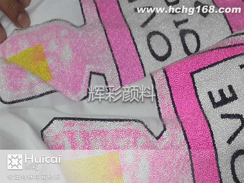 先印輝彩印花材料的HC-800粘珠漿一次吹干打底,然后再印第二次時(shí)以膠珠的大小來(lái)確定印粘珠漿的厚度,或是印第三次粘珠漿以便留有足夠的粘珠漿