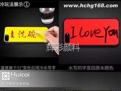 常規(guī)的溫變粉變色溫度為31℃,俗稱手摸變色、手感變色,實(shí)際上溫變粉打造出的手機(jī)殼的變色條件只是一個(gè)區(qū)間,也就是從開始變色到變色結(jié)束的溫度范圍,這個(gè)范圍一般為4~6℃。除了遇熱變色外,當(dāng)整體溫度高于某個(gè)區(qū)間時(shí),在手機(jī)殼上用冷水寫字,也能呈現(xiàn)特別的玩法。