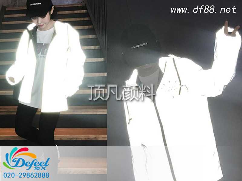 為什么說反光印花可以提升服裝的安全性呢?其實(shí)原本反光材質(zhì)是應(yīng)用在需要在夜晚工作的崗位的服裝上,因?yàn)樗梢哉凵涔饩€,當(dāng)車輛的光線照射在服裝上時(shí),它的折射特性可以讓司機(jī)看到有人在工作,起到警示作用,保障人們的安全。反光粉的顏色多種多樣,傳統(tǒng)的以白色反光粉和灰色反光粉為主,而今反光粉廠家生產(chǎn)技術(shù)不斷提高,紅色反光粉、綠色反光粉、黑色反光粉等等不斷面向市場(chǎng),得到市場(chǎng)的高度認(rèn)可。