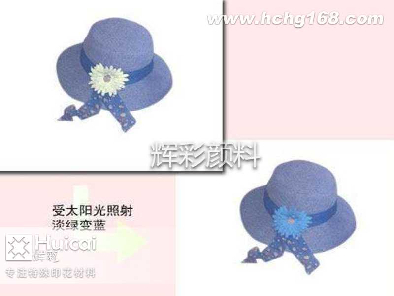 這種變色帽為什么會室內(nèi)室外的顏色不一樣呢?這還得從里面的原料光變粉說起,這種光變粉是利用吸收紫外線而轉(zhuǎn)換成能量進(jìn)行顏色變化的原理。把這種光變粉調(diào)制成感光變色漿后應(yīng)用到印花上,印制后的圖案經(jīng)過陽光或者紫外線照射,吸收陽光或紫外線的能量而產(chǎn)生顏色變化,當(dāng)失去陽光或者紫外線照射后,又會恢復(fù)到原來的顏色。