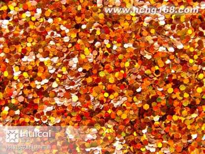 金蔥粉:又名閃光片。包括鋁質(zhì)金蔥粉,聚酯金蔥粉,幻彩粉,鐳射金蔥粉等。有鋁質(zhì),PET,PVC材質(zhì)。大小規(guī)格(size)由1/256(0、1mm)至1/8(3、0mm)。形狀有六角形,四角形,長條針形和不規(guī)則形狀,并有多種顏色可供選擇。各種材質(zhì)金蔥粉可不同程度承受高溫(由80*C,180*C,300*C不等) 。