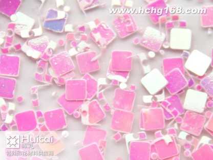 金蔥粉:又名閃光片。包括鋁質(zhì)金蔥粉,聚酯金蔥粉,幻彩粉,鐳射金蔥粉等。有鋁質(zhì),PET,PVC材質(zhì)。大小規(guī)格(size)由1/256(0、1mm)至1/8(3、0mm)。形狀有六角形,四角形,長條針形和不規(guī)則形狀,并有多種顏色可供選擇。各種材質(zhì)金蔥粉可不同程度承受高溫(由80*C,180*C,300*C不等) 。