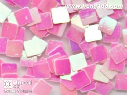 金蔥粉:又名閃光片。包括鋁質(zhì)金蔥粉,聚酯金蔥粉,幻彩粉,鐳射金蔥粉等。有鋁質(zhì),PET,PVC材質(zhì)。大小規(guī)格(size)由1/256(0、1mm)至1/8(3、0mm)。形狀有六角形,四角形,長(zhǎng)條針形和不規(guī)則形狀,并有多種顏色可供選擇。各種材質(zhì)金蔥粉可不同程度承受高溫(由80*C,180*C,300*C不等) 。
