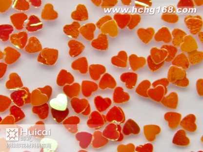 金蔥粉:又名閃光片。包括鋁質(zhì)金蔥粉,聚酯金蔥粉,幻彩粉,鐳射金蔥粉等。有鋁質(zhì),PET,PVC材質(zhì)。大小規(guī)格(size)由1/256(0、1mm)至1/8(3、0mm)。形狀有六角形,四角形,長(zhǎng)條針形和不規(guī)則形狀,并有多種顏色可供選擇。各種材質(zhì)金蔥粉可不同程度承受高溫(由80*C,180*C,300*C不等) 。