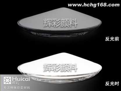 1、先用膠水打底一次 → 2、用銀粉與膠水?dāng)嚢杈鶆蛴〉诙?→ 3、直接印反光粉(不用加膠水),→用平壓機(jī)將反光粉壓入膠水的半徑厚度即可。