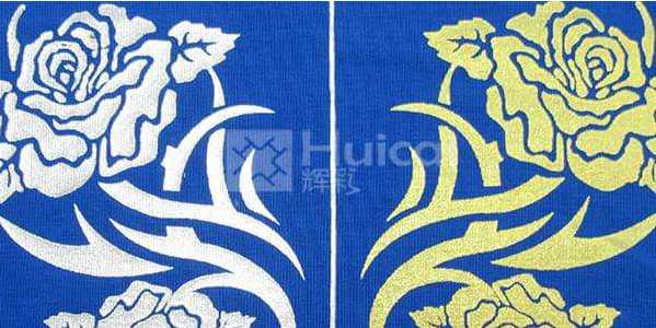 近年來隨著印花行業(yè)的日益發(fā)展,仿燙銀漿、仿燙金漿也開始越來越多人使用了。這兩種發(fā)印花漿料是輝彩針對布料燙金漿開發(fā)的新產(chǎn)品,無需用金箔紙壓燙,直接印制出來就能達到燙金紙的效果。